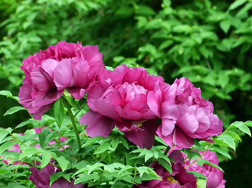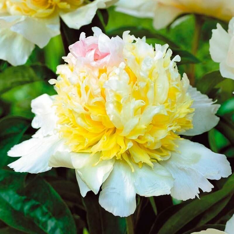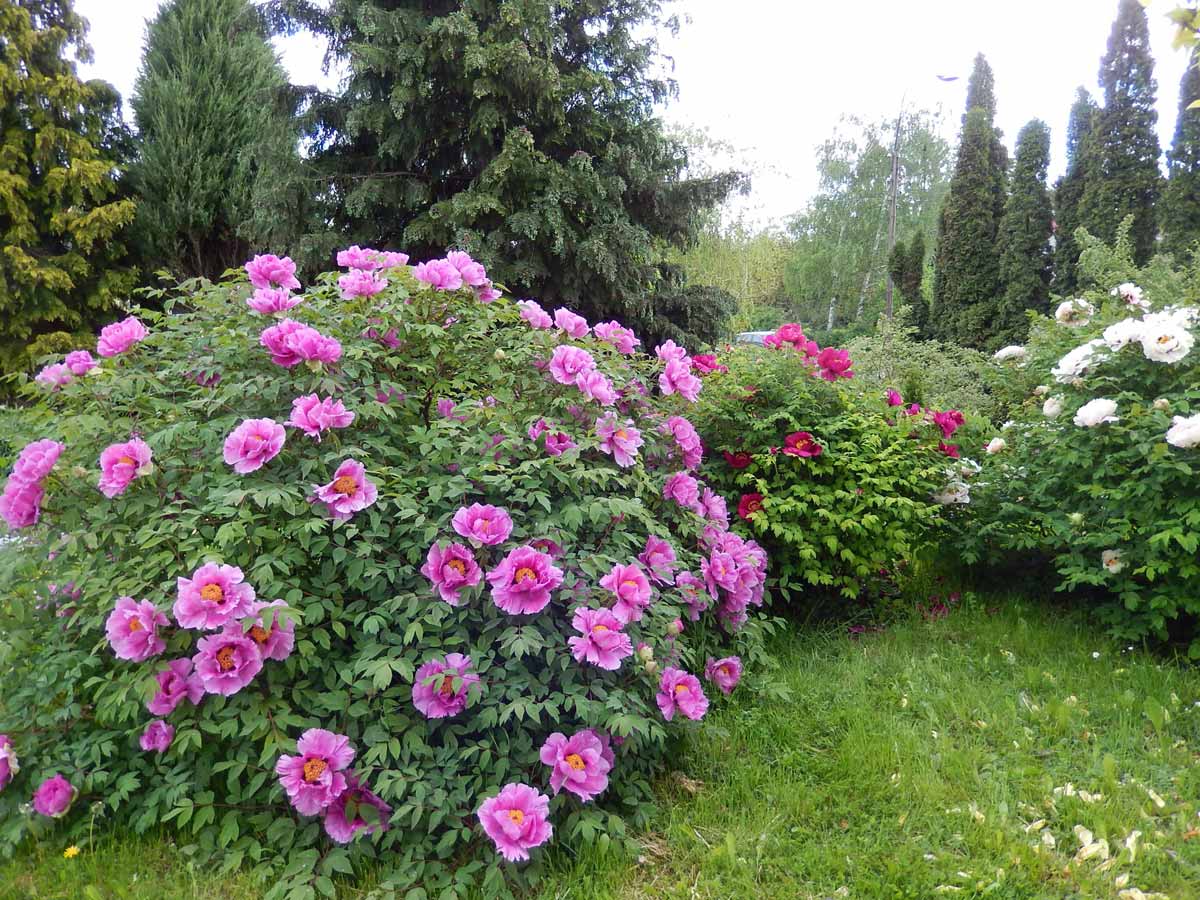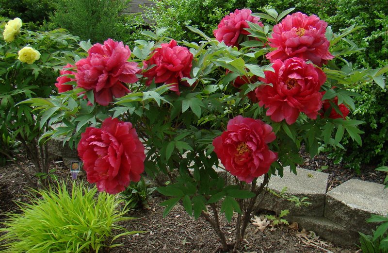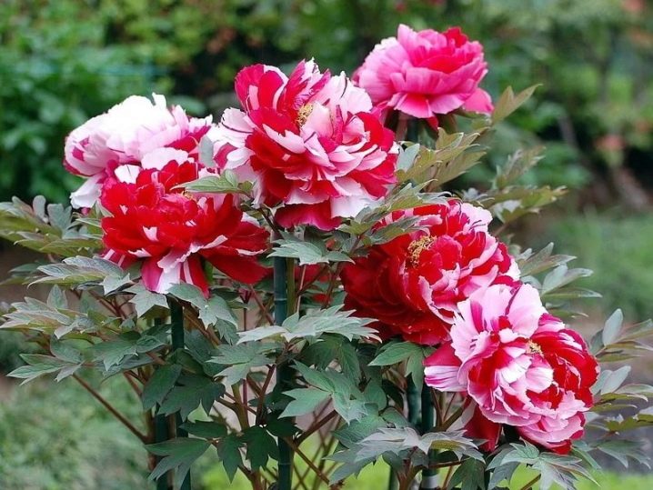 Çiçəklər gövdələrin ucunda yerləşir və onların diametri 12-20 sm və daha çoxdur. Belə çiçəklər bolluqla, yarım-dolma və adi, amma heç də az gözəl olmazlar. Onlar ağ, bənövşəyi, sarı, roz, qırmızı, və ya iki rəngi birləşdirə bilərlər (məsələn, "Kiao qızları" növü kimi). Yaş ilə birlikdə çiçəklənmə daha da sürətlənir. Dərindən pion ənənəvi olandan iki həftə əvvəl çiçəklənməyə başlayır, və bu çiçəklənmə payız qədər davam edir! Bu pionlar soyuq və dona davamlıdır.